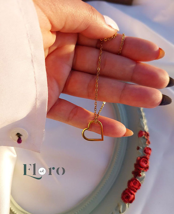گردنبند دخترانه استیل طرح قلب رنگ ثابت