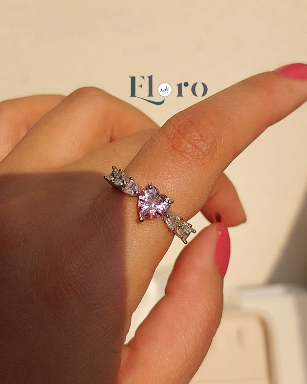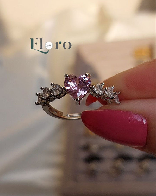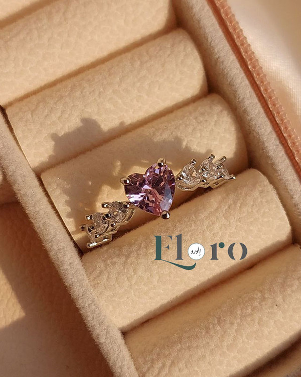 انگشتر دخترانه جواهری قلب صورتی