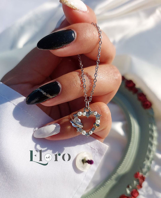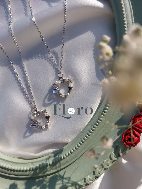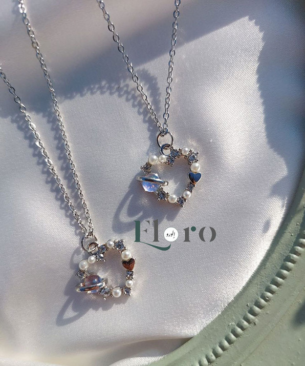 گردنبند دخترانه قلب مرواریدی پینترستی نگین دار