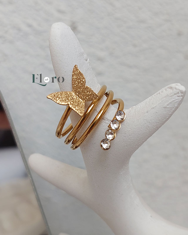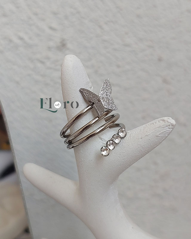 انگشتر جواهری پروانه 🦋 استیل ✅ رنگ ثابت✅ دو رنگ طلایی و سیلور🩶💛 فقط سایز ۷ موجود✅ همه عکس ها بدون فیلتر هستند و توسط الورو اکسسوری گرفته شدند. 📸